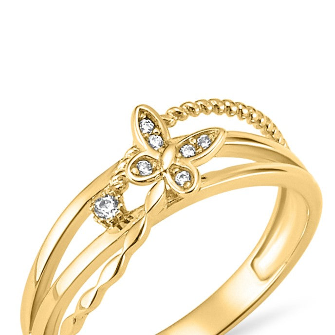 Explore the ethereal beauty of our exquisite 14k gold ring, adorned with a design of two intertwined lines crowned by delicate butterflies. The intertwined lines symbolize unity and harmony, while the butterflies, with their grace and lightness, represent freedom and transformation.